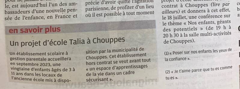 La nouvelle république : Talia, la nouvelle école parentale de Chouppes